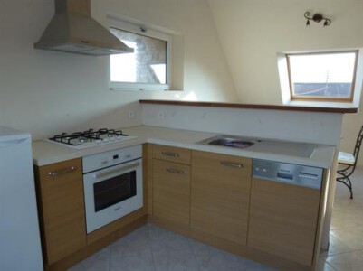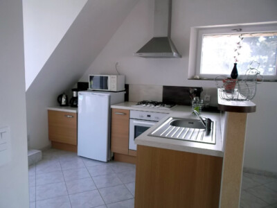 - offene Küche, (Gasherd, Geschirrspüler, Kühlschrank)